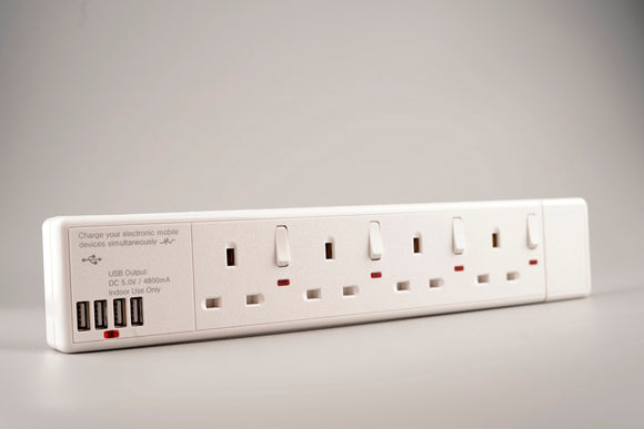 4 Way / 2 Metre Extension Lead with USB (4800mA)