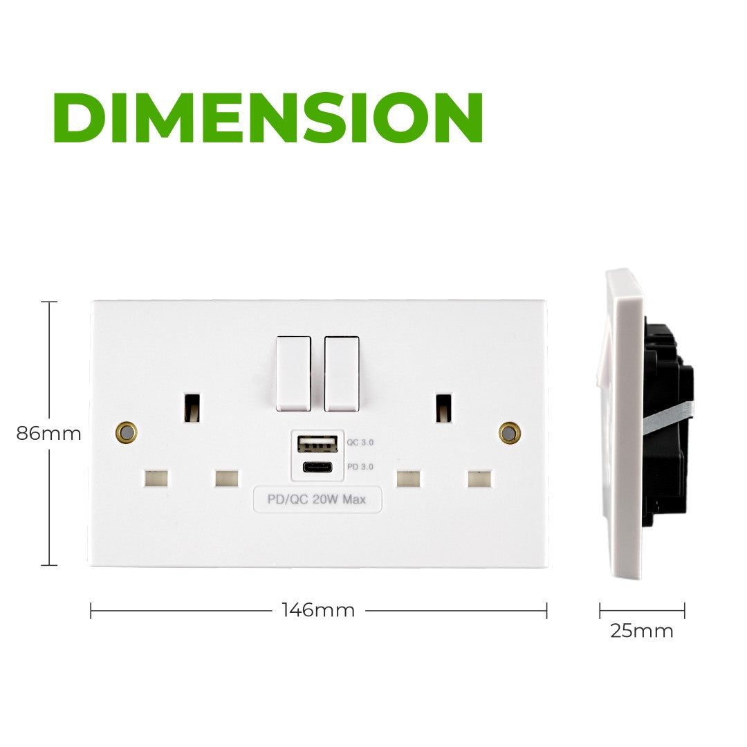 - Compatibility: This Fast charge USB C socket which fits into a 2 Gang 25mm back box, supports ALL smart phones / tablets / smart watches series. Ensuring a Quick and Safe charging to your valuable devices.
