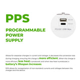 - Better Battery’s Lifespan: Programmable power supply (PPS) allows for stepwise changes in current and voltage. Decreasing the conversion loss, ensuring the charge is more efficient. PPS function also produced less heat, which increase a battery’s lifespan.