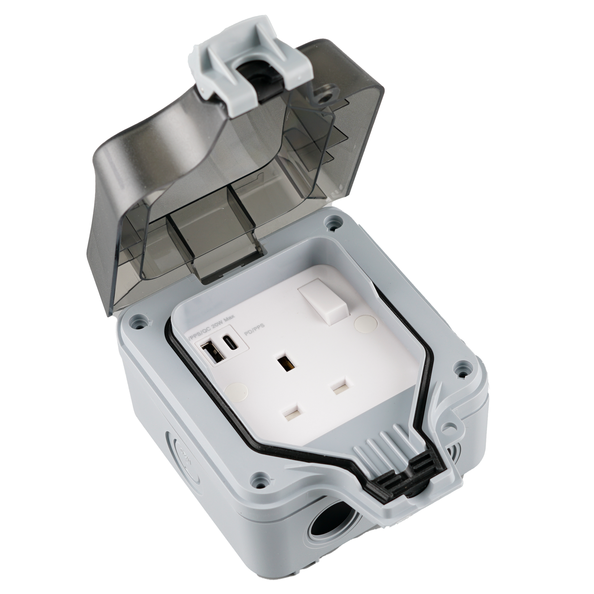 IP66 WaterProof 13A 1Gang Switched Socket with USB Type A and Type C (PD3.0 20W)