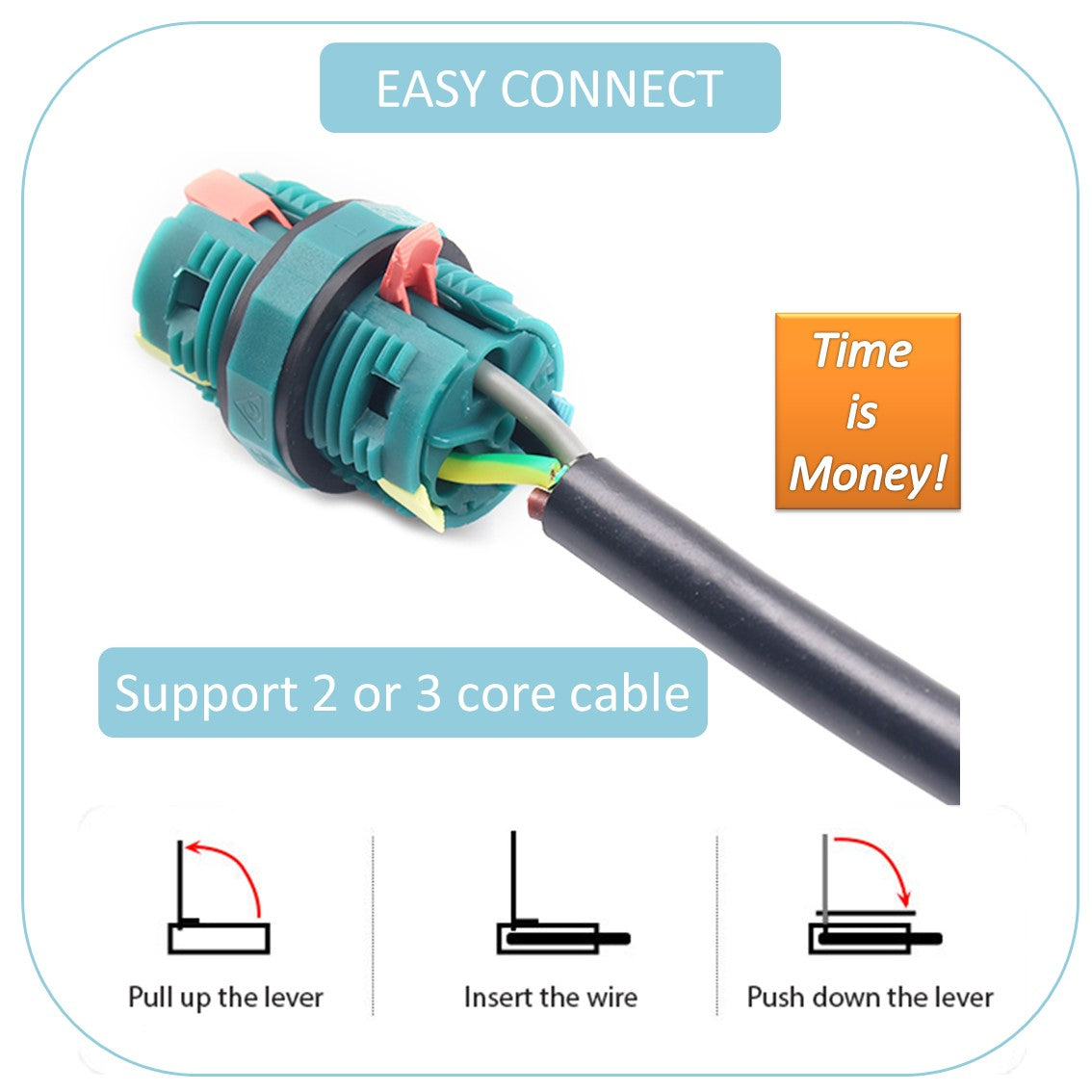 Compact in Size - With only 85mm(3.3in) x 23mm(0.9in) in size, this IP68 electrical screwfree connector fit in many purposes, eg, act as connection box outdoor cover, junction extension plug for external LED lights fittings.
