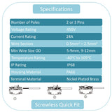 Screwless Waterproof IP68 Connector - 2 pin (Pack of 2)